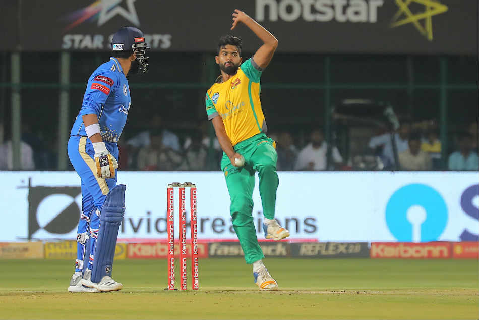 Coming on in the 8th over with the Blasters on 37/2, Appanna struck straightaway, having opener KB Pawan caught at deep midwicket. Using the arm ball to the left-handers and the stock away ball to the right-handers Appanna kept the batsmen guessing all the time.
