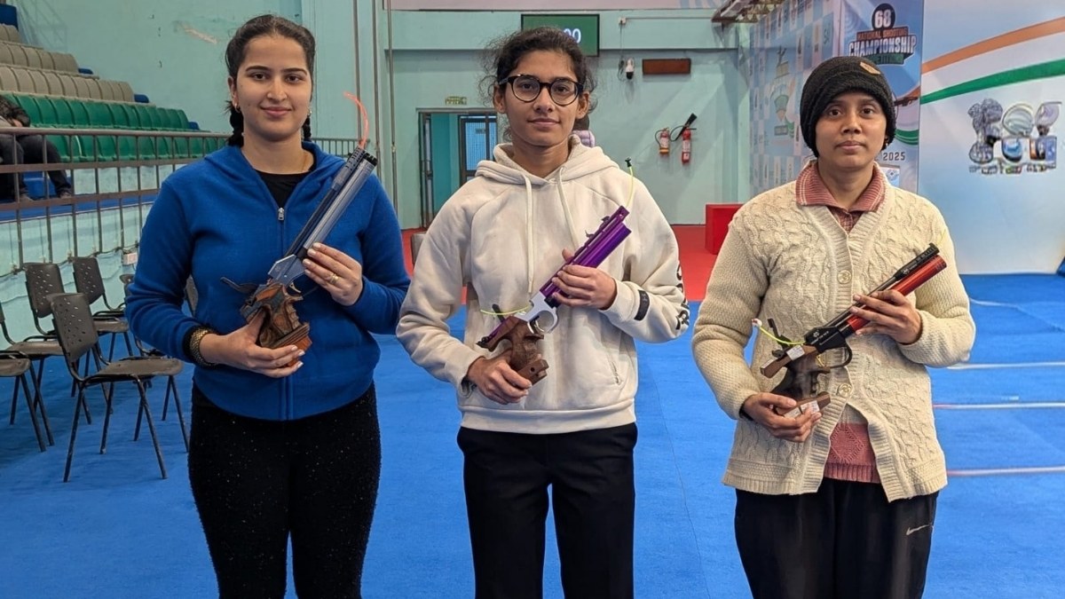 World Cup Final silver medallist Sainyam continued her good run of form, finishing on top with a dominant final score of 243.1, 5.4 points ahead of Rhythm Sangwan, who finished second on 237.7. Meenu Pathak once again finished in the top three in the finals, finishing with a score of 218.5.