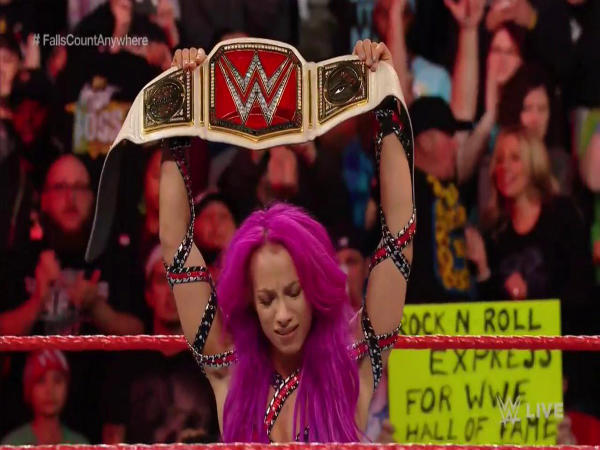 In the end, Banks locked in the Bank Statement and Charlotte tapped out. Ric Flair came out to hold Sasha's hands high above while she was celebrating.
