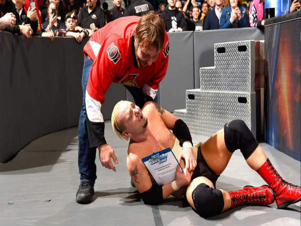 The distraction allowed Miz to hit the Skull Crushing Finale to retain his title. Dolph Ziggler appeared to put down Miz with a superkick.